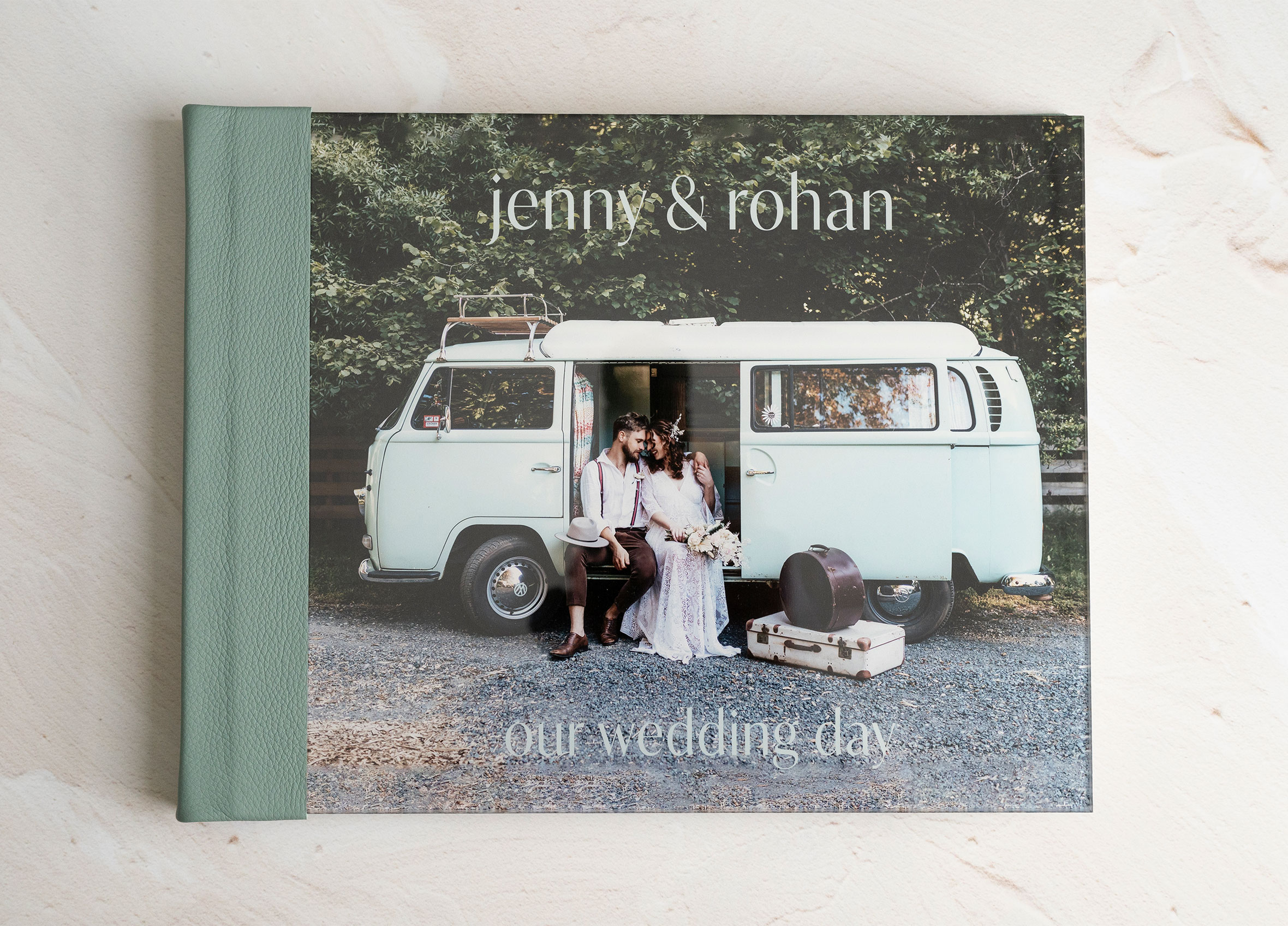 Our beautiful album cover options give you the flexibility to create unique, customized albums for each and every client. Your album can be embossed with your clients names, wedding date, or other personalized details, or you could choose one of our motif designs. If your client prefers an album with a photo cover you can choose between our Acrylic or Photo Montage as well as a full Image cover where an image is wrapped around the entire album cover.