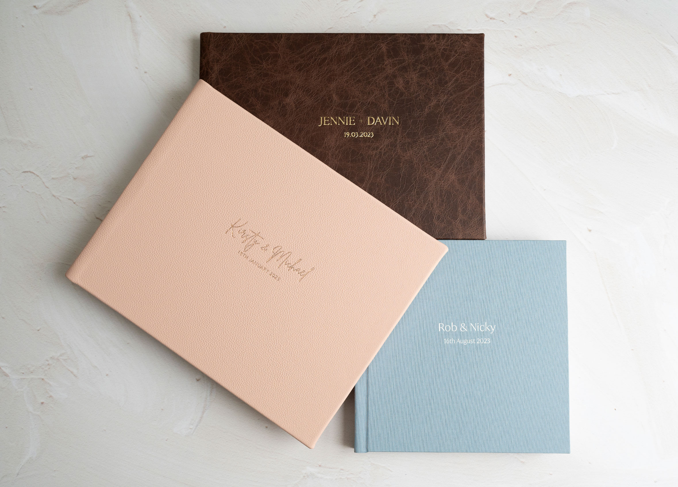With a large range of cover materials to choose from, including Premium and Classic Leathers, Velvets, Macrosuedes, Japanese silks and gorgeous Linens - you are sure to find an album cover to satisfy every client's wish.