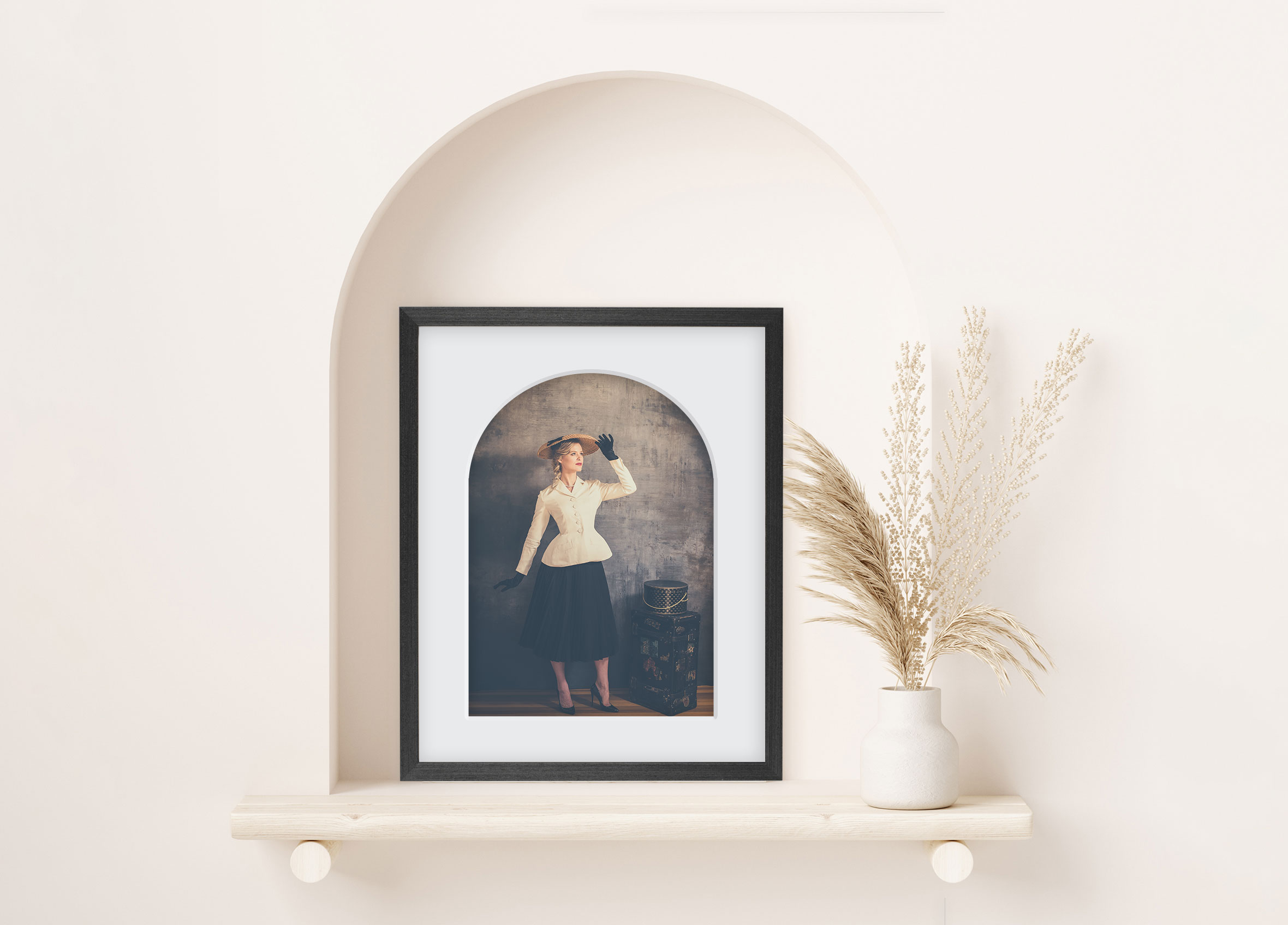 - Features a unique arch frame mat over your image