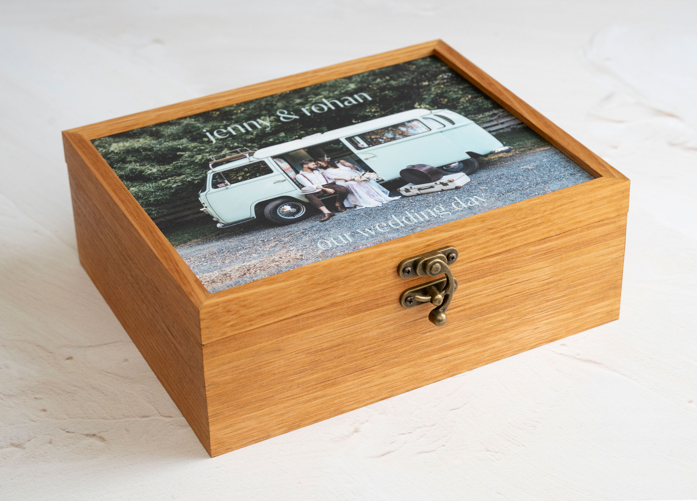 - Bamboo Boxes can arrive complete with photos printed & mounted