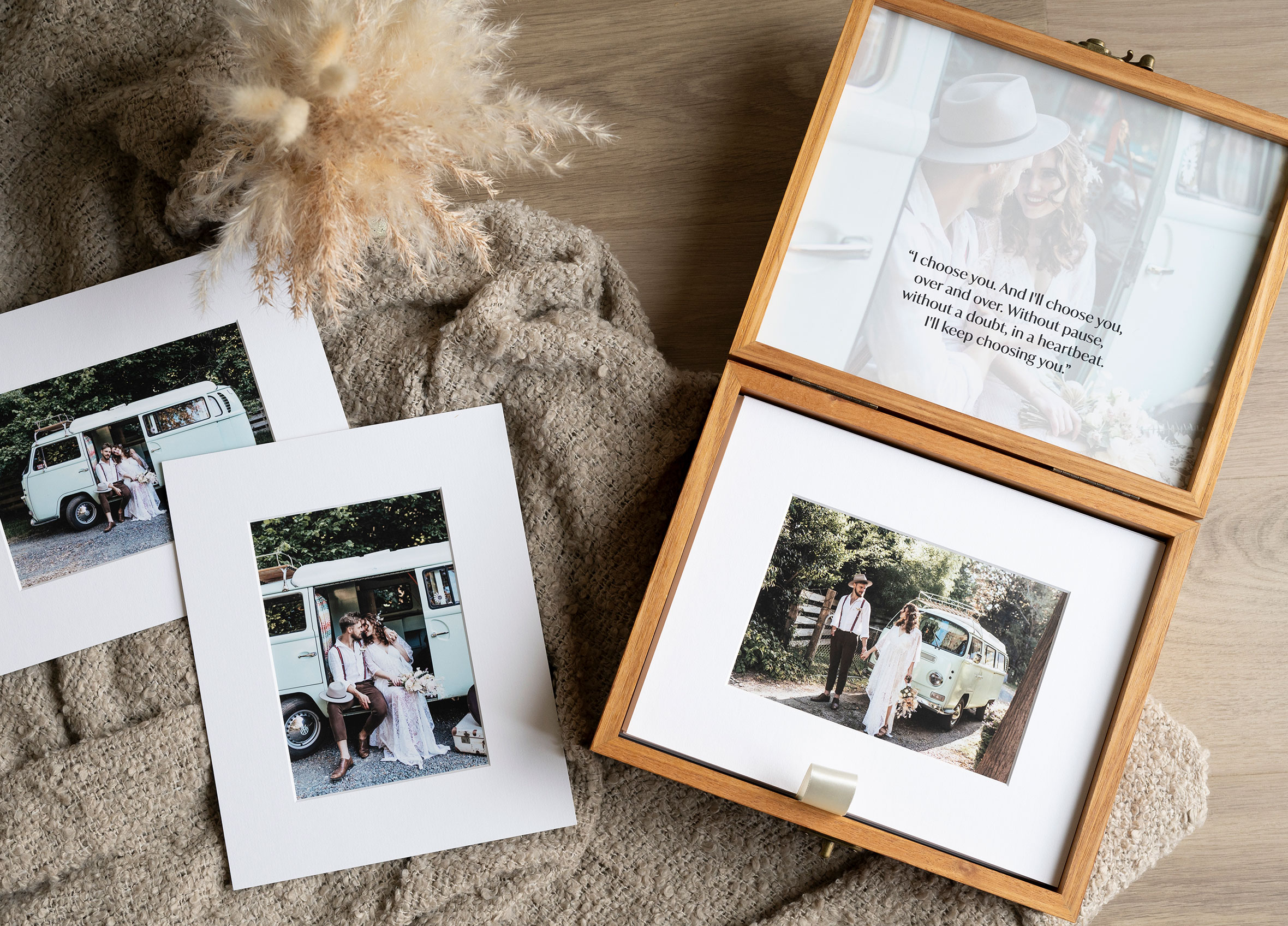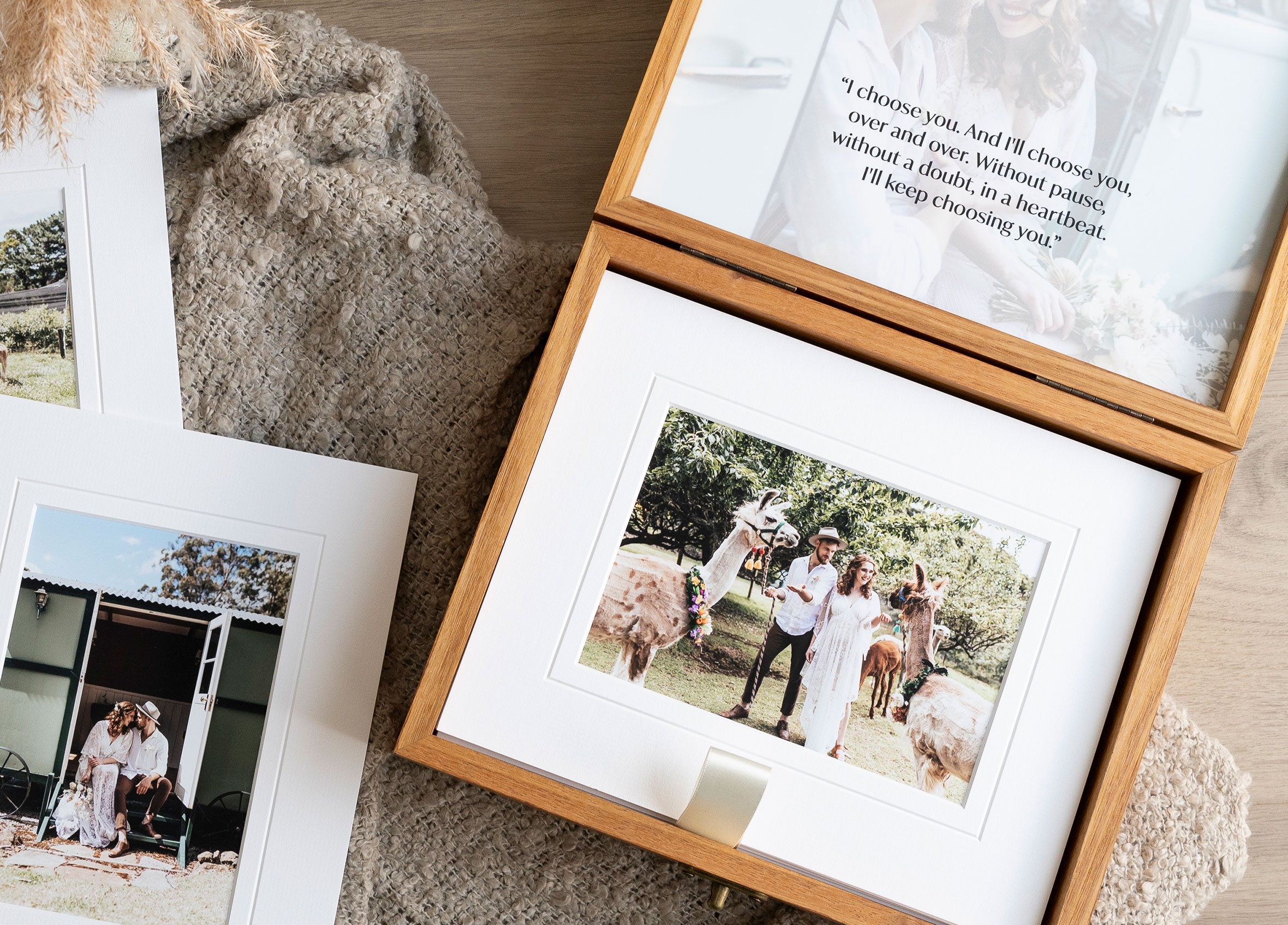 You can choose to have us print and mount your photos into your Frame Mounts so your Bamboo Box arrives complete ready to hand over to your customer.
