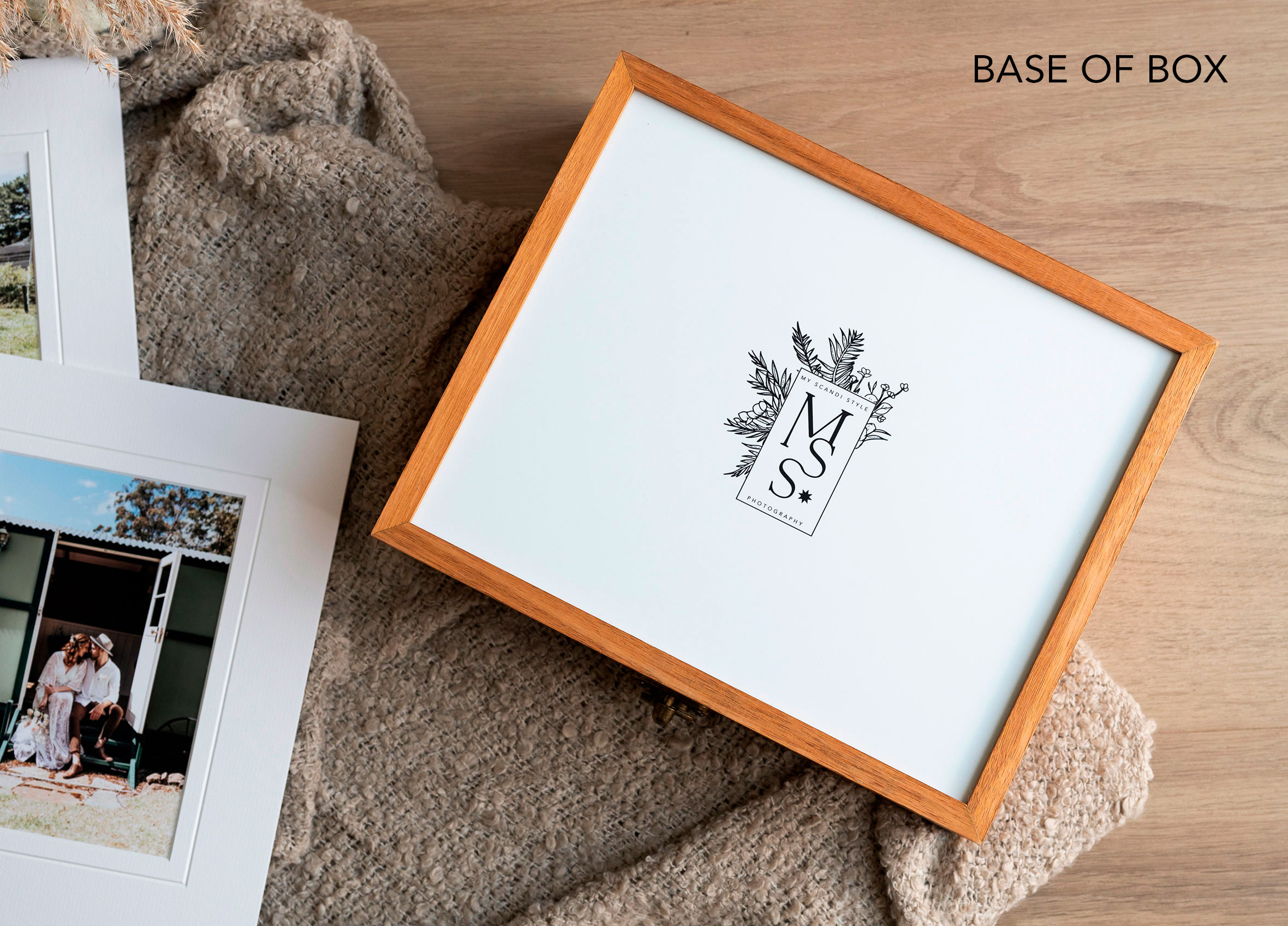 The base of the box can have an image printed on it and is included in the price. We find most photographers use this area to place their studio logo.