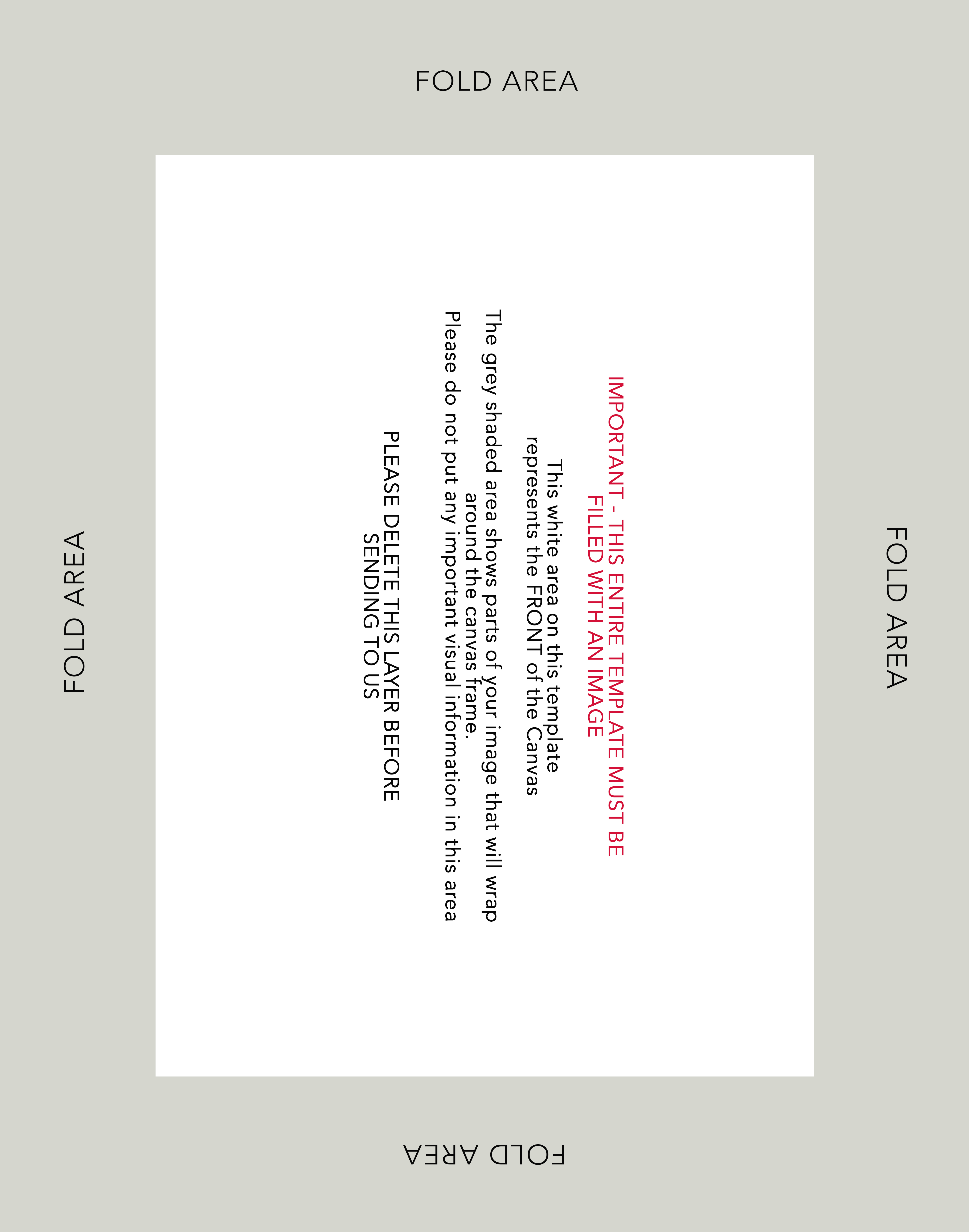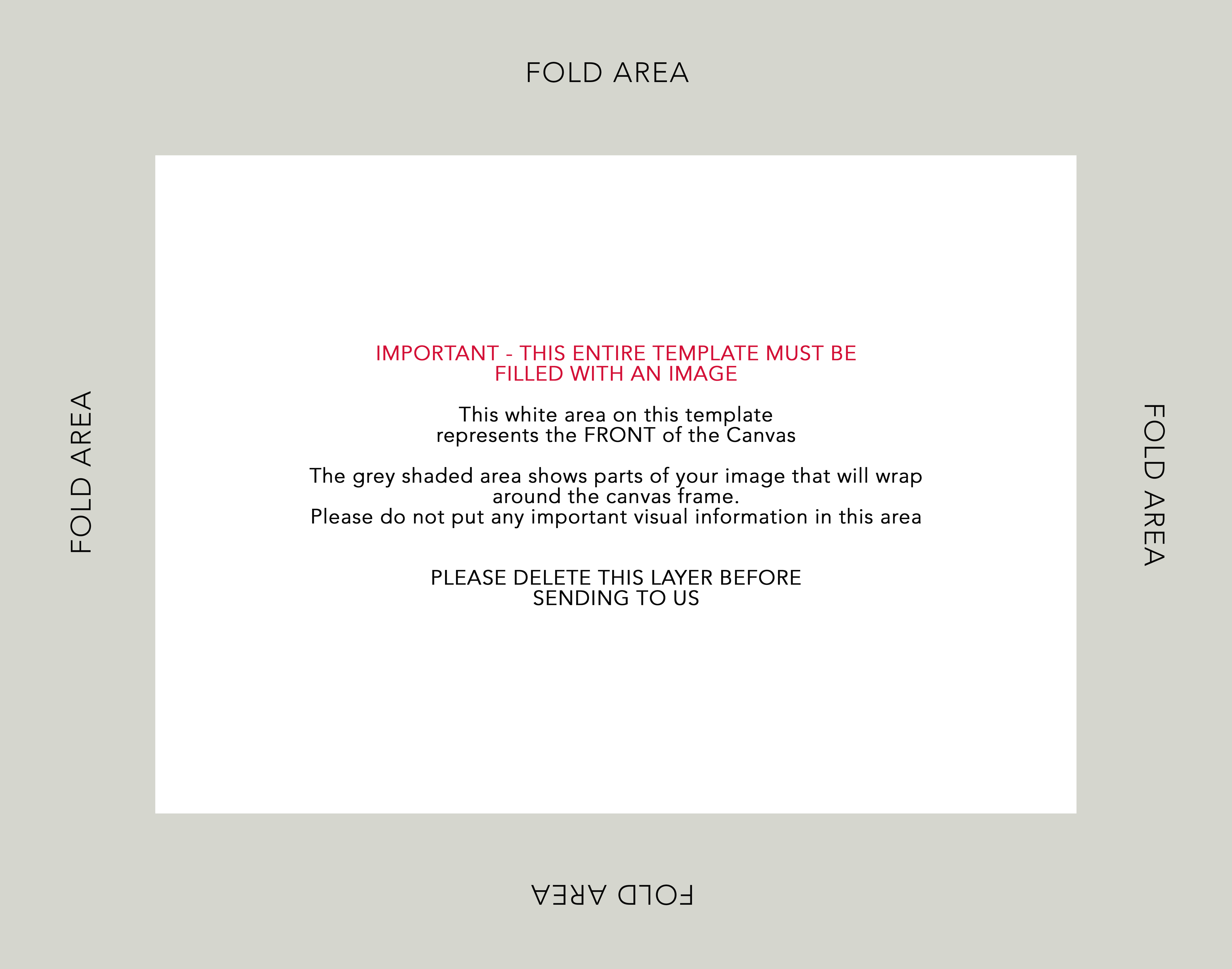 Your Canvas must be created using our Photoshop template. The template and instructions on using these can be found below. You can also use our Design Service (for an additional fee) if you don't want to design your canvas yourself.