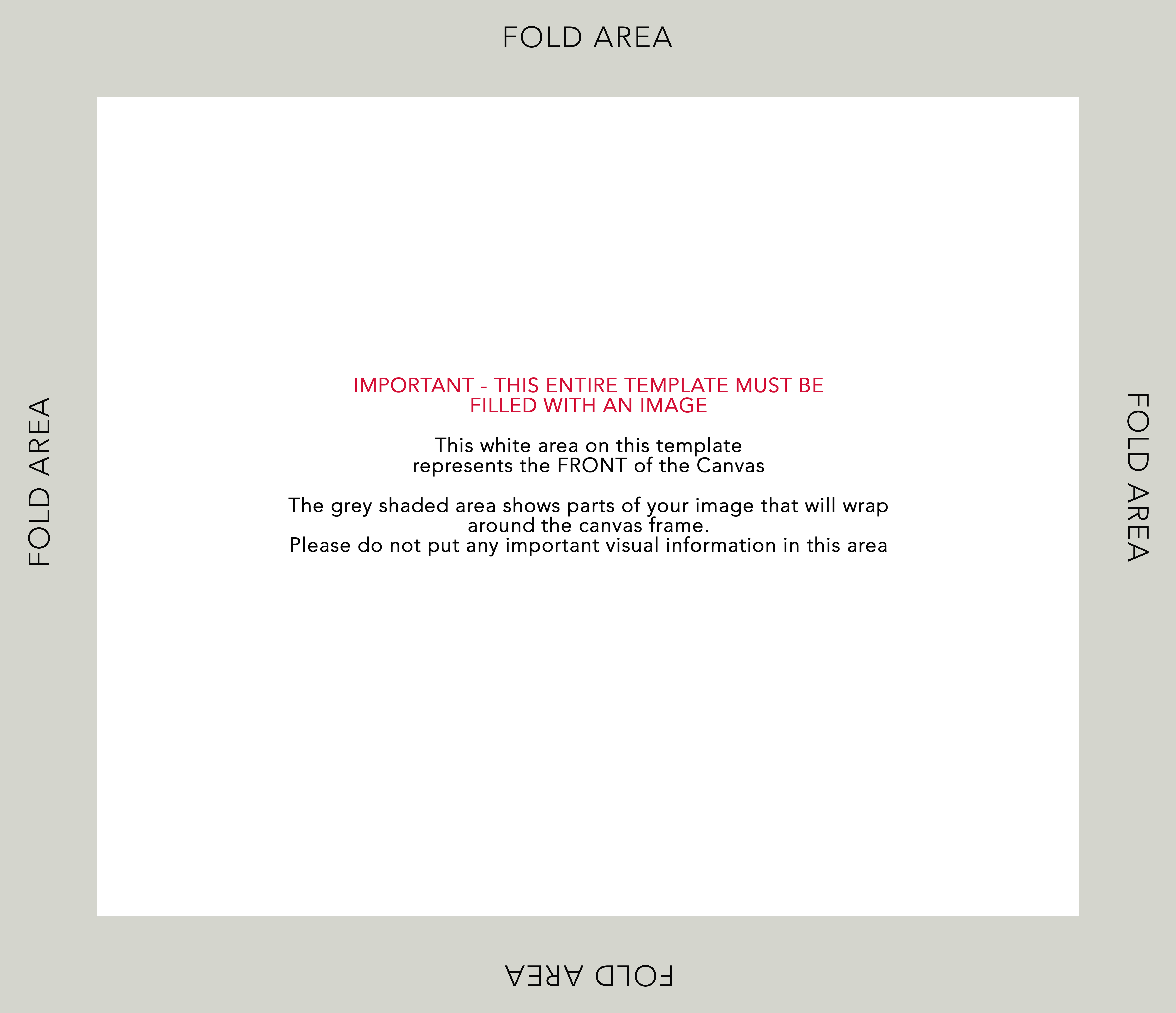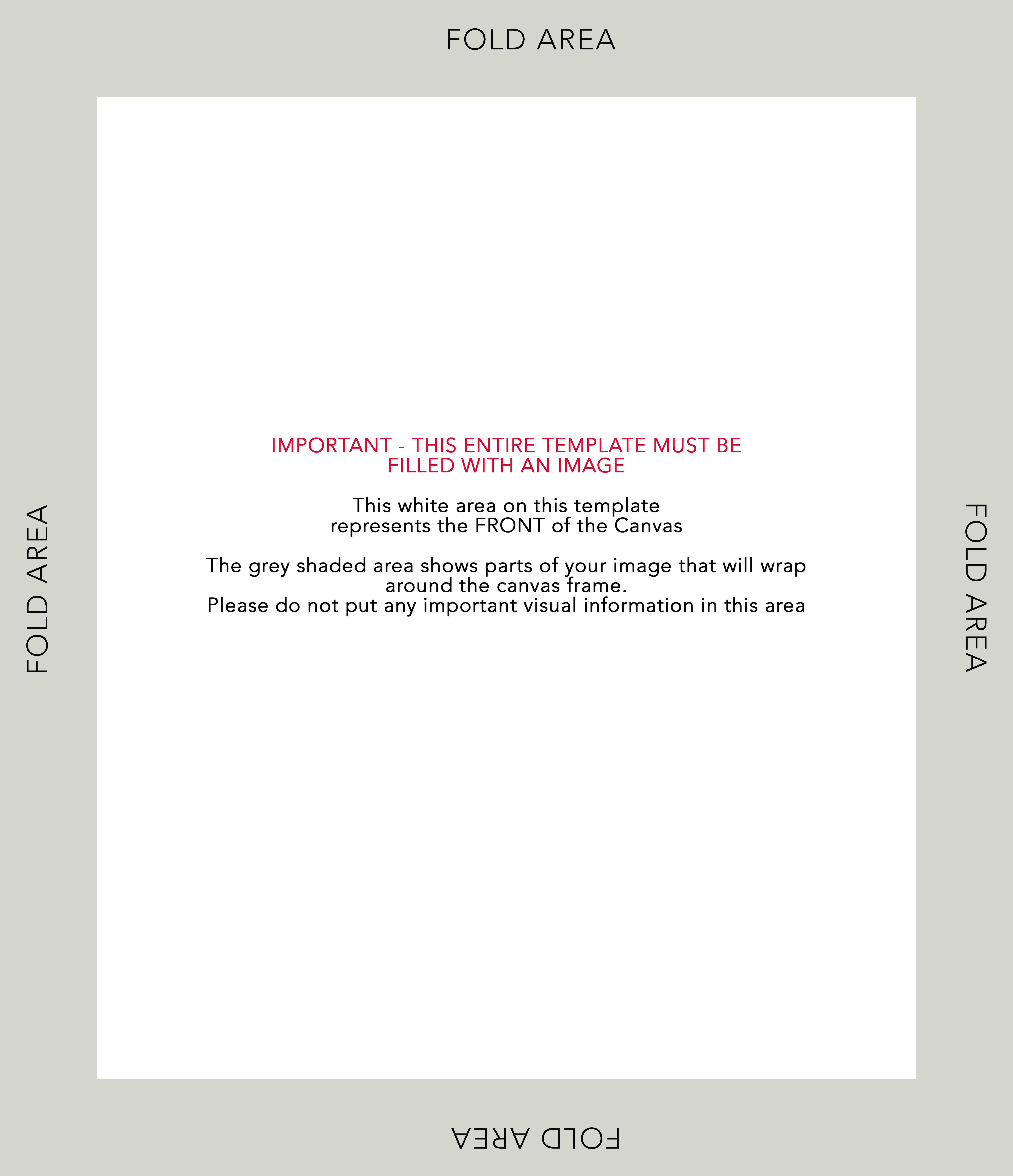 Your Canvas must be created using our Photoshop template. The template and instructions on using these can be found below. You can also use our Design Service (for an additional fee) if you don't want to design your canvas yourself.