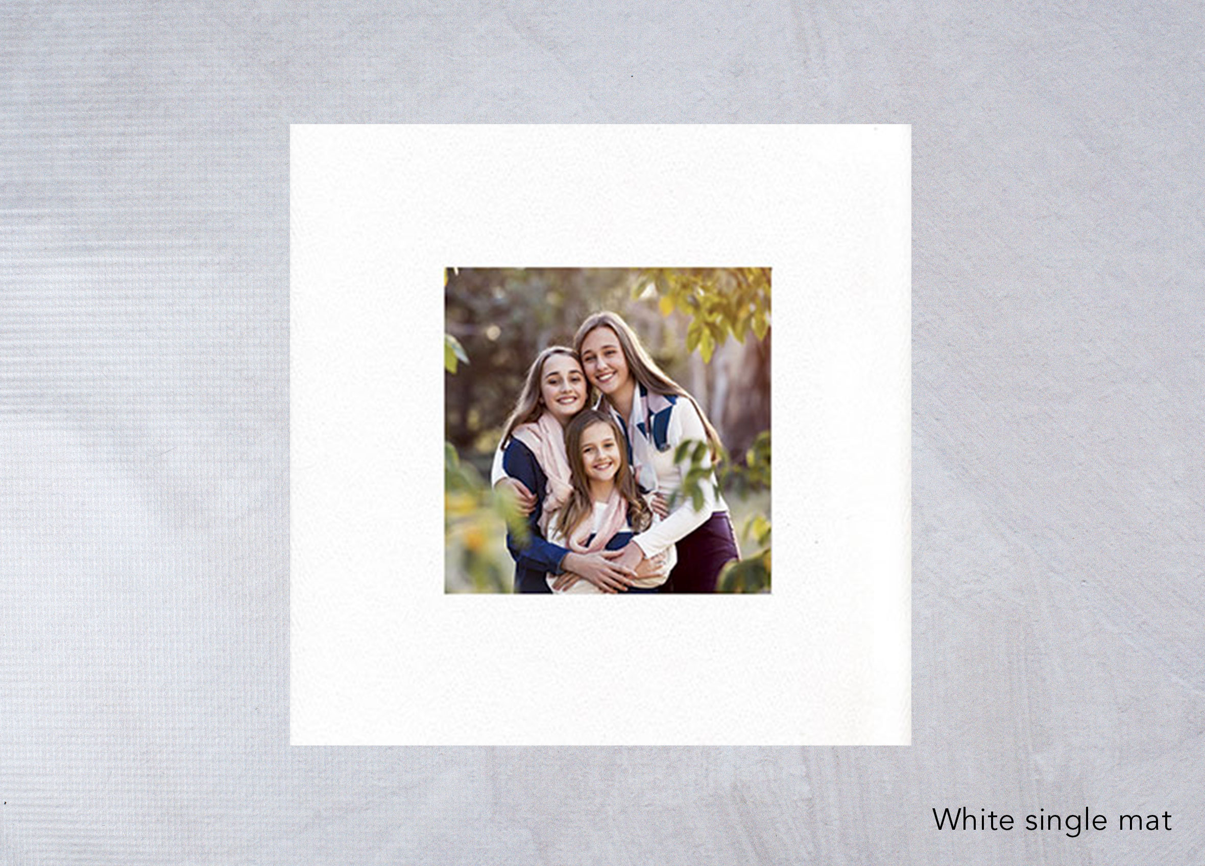 - Blank mats with adhesive allow for edge to edge flushmount images