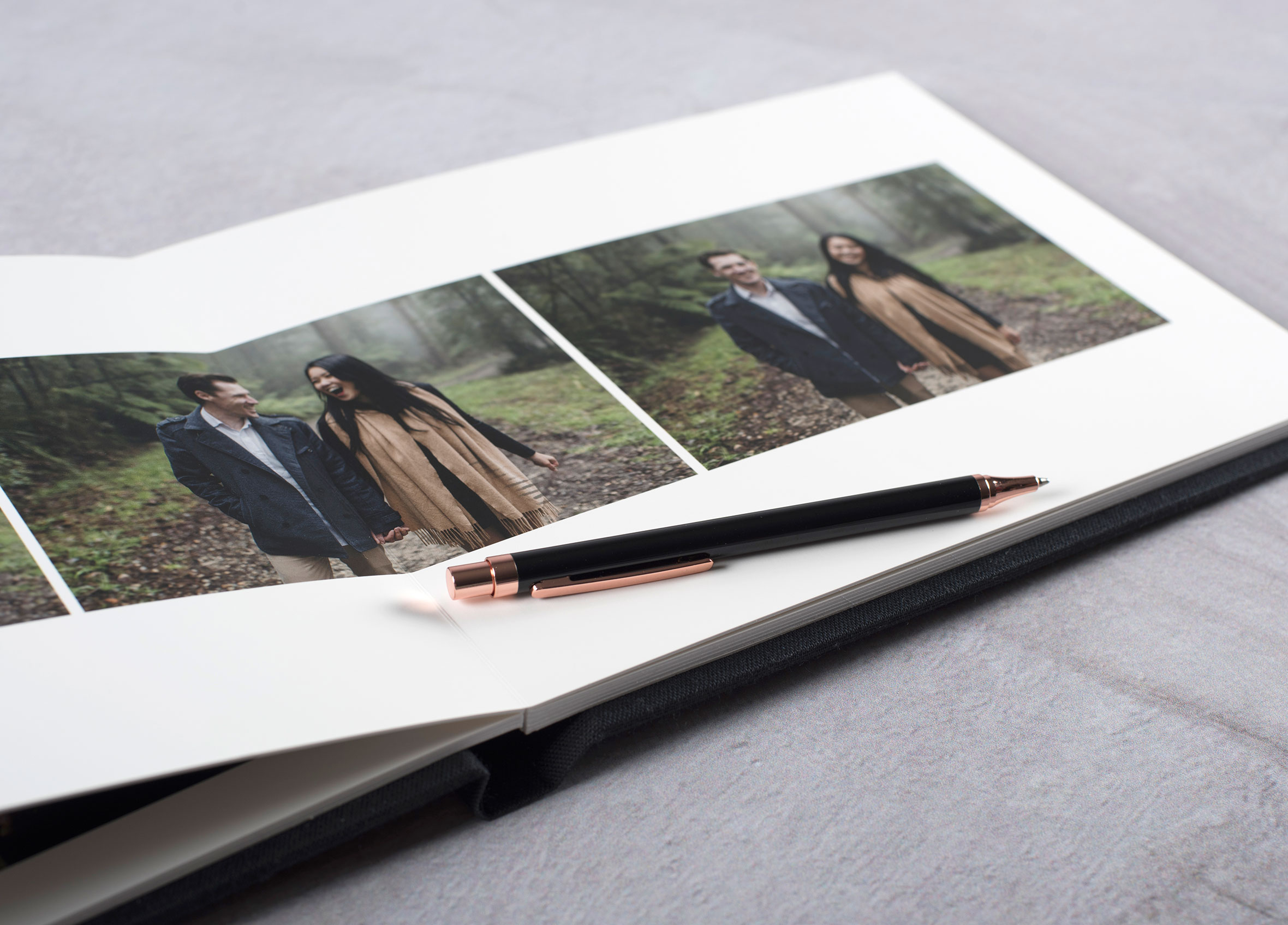 - Layflat album with a large range of beautiful textured cloth or image covers