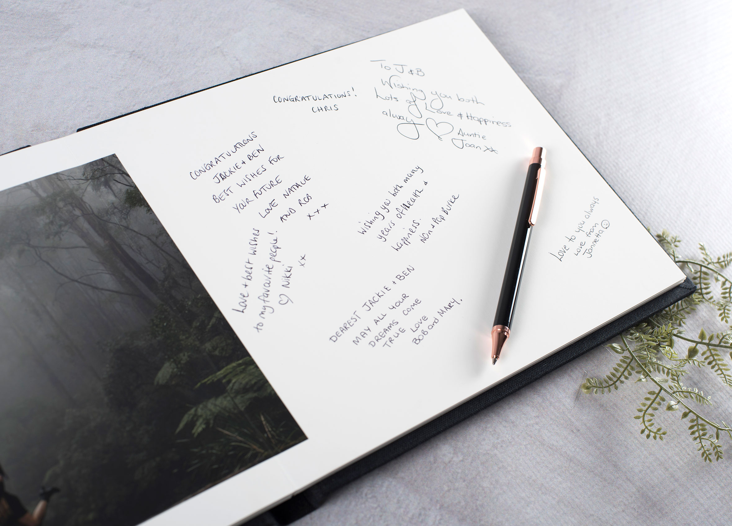- Personalised album featuring your photos with space for guests to sign