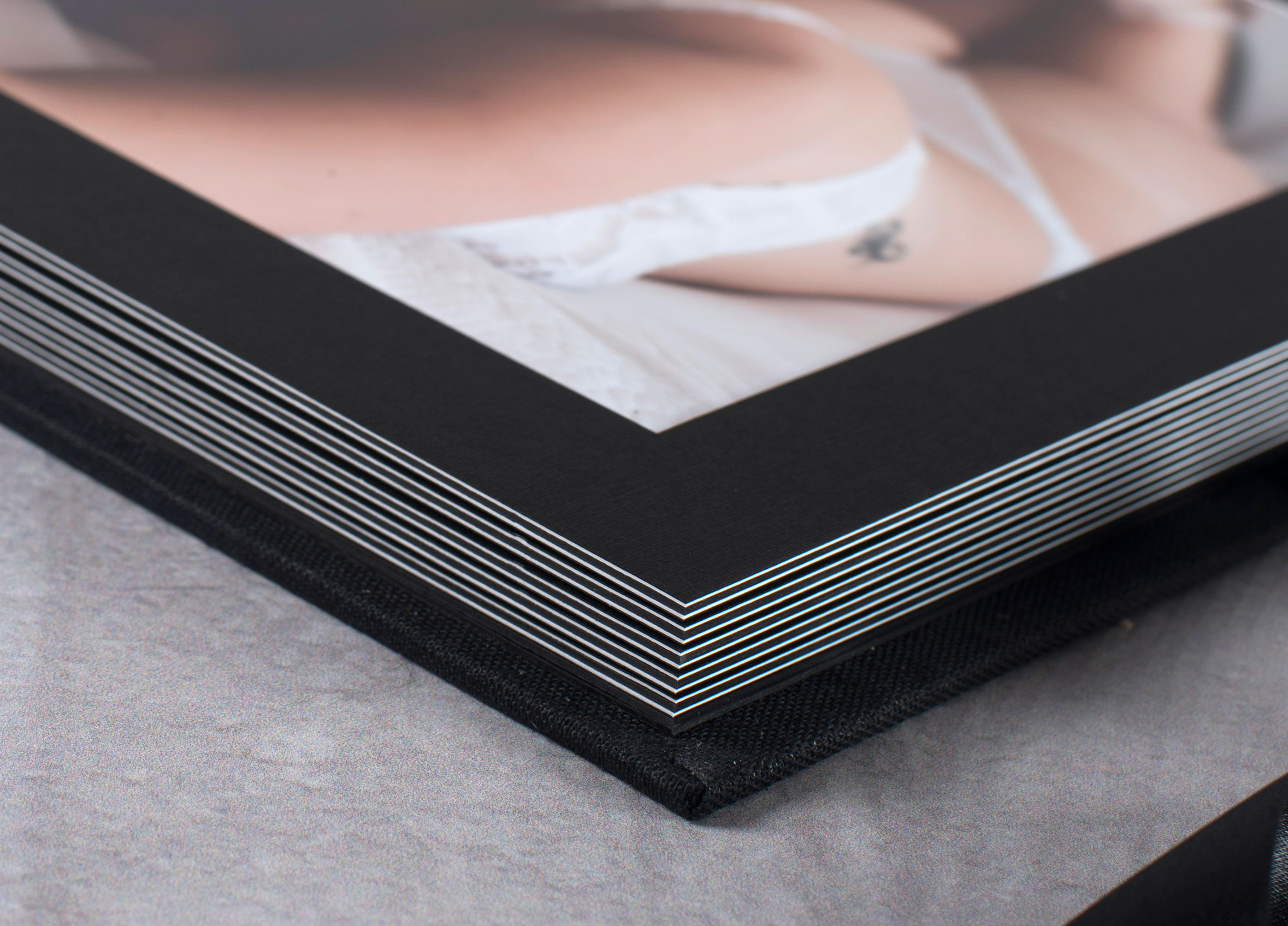If you choose to assemble the album yourself it is very simple. Each mat is open at the top of the page, and you slide your photo down behind the mat, and fix with double sided tape. You can use our Photo Tabs to permanently hold the photos in place.