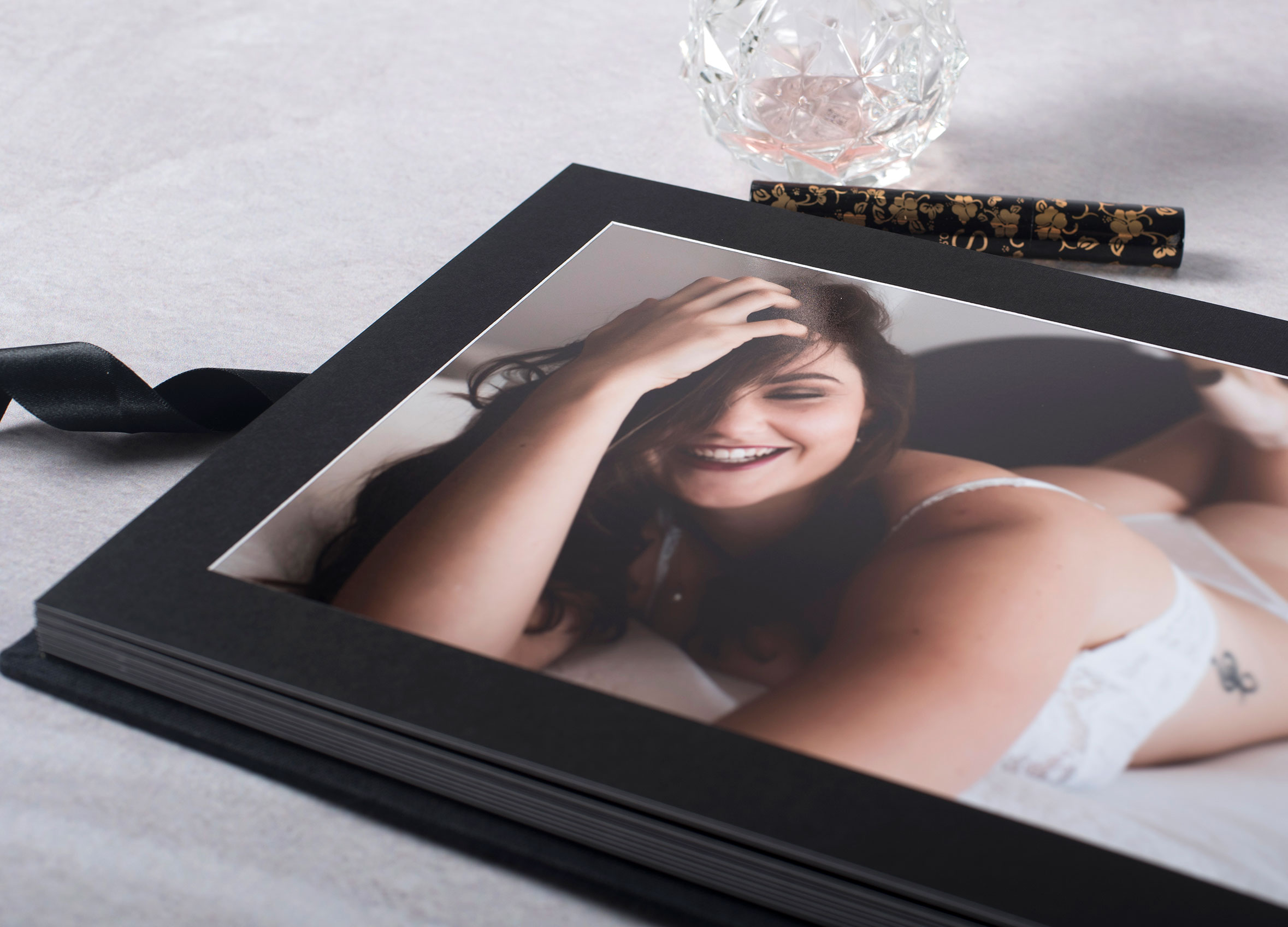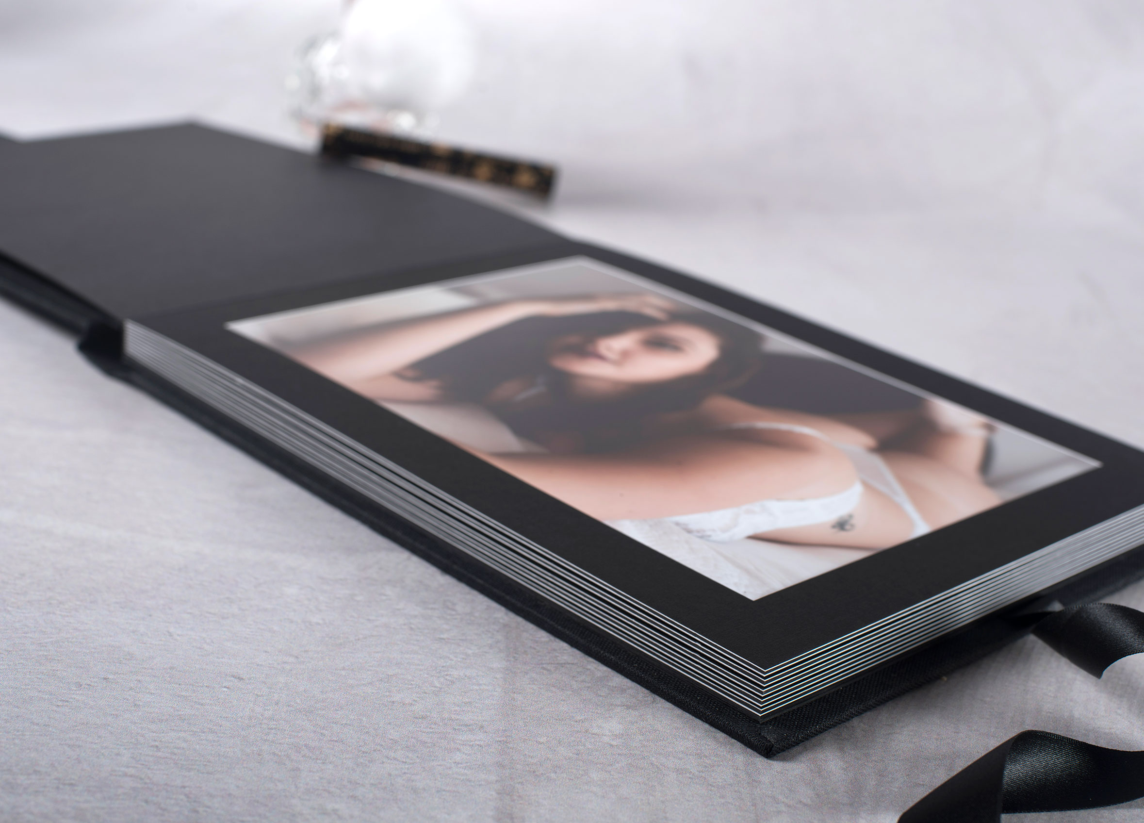 - Black presentation box with boudoir satin wrap - NEW