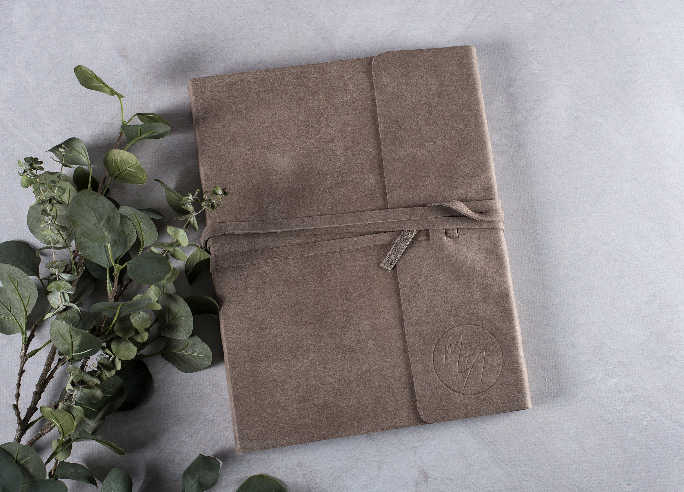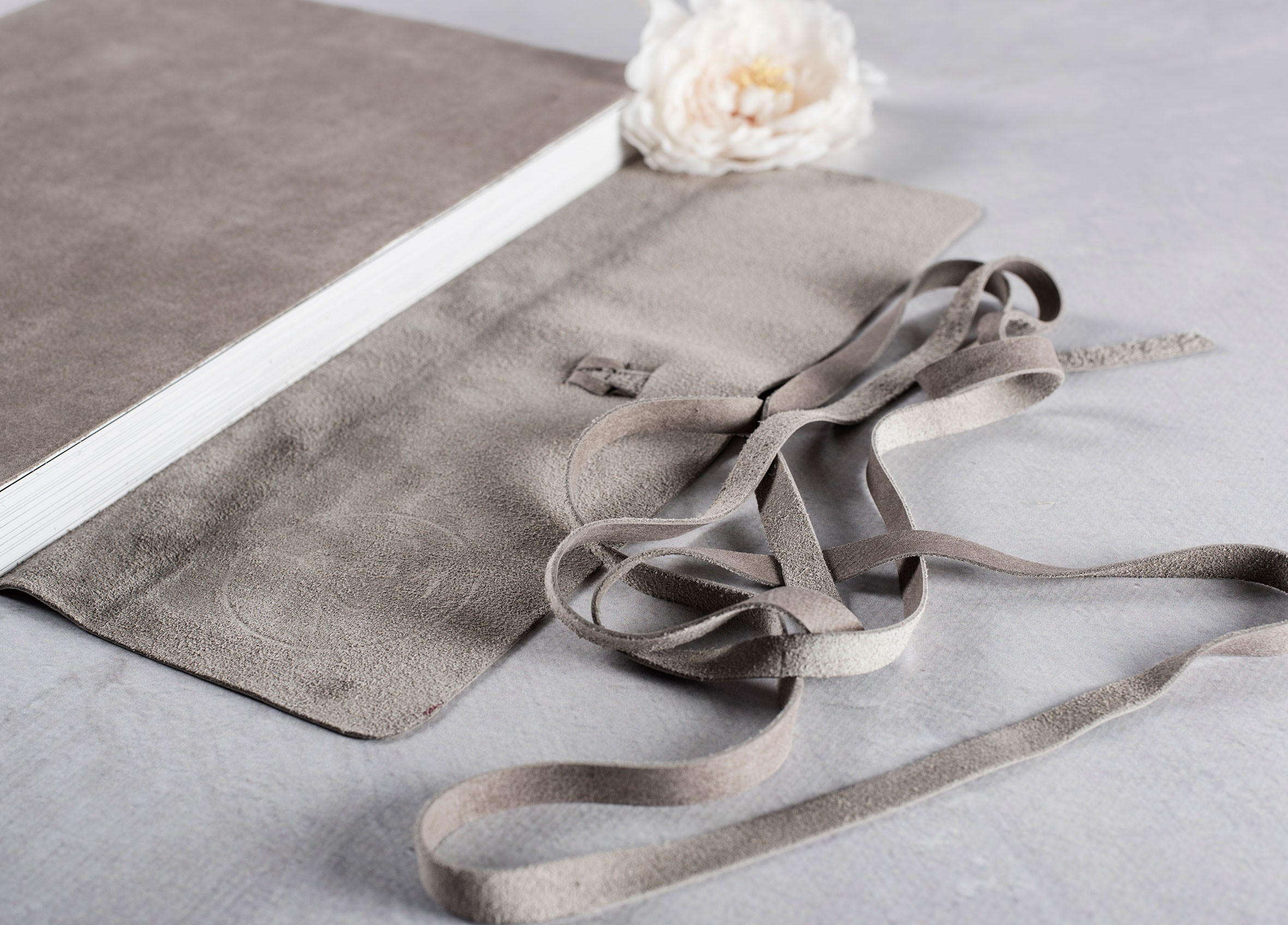 - Featuring leather covers with co-ordinating leather tie