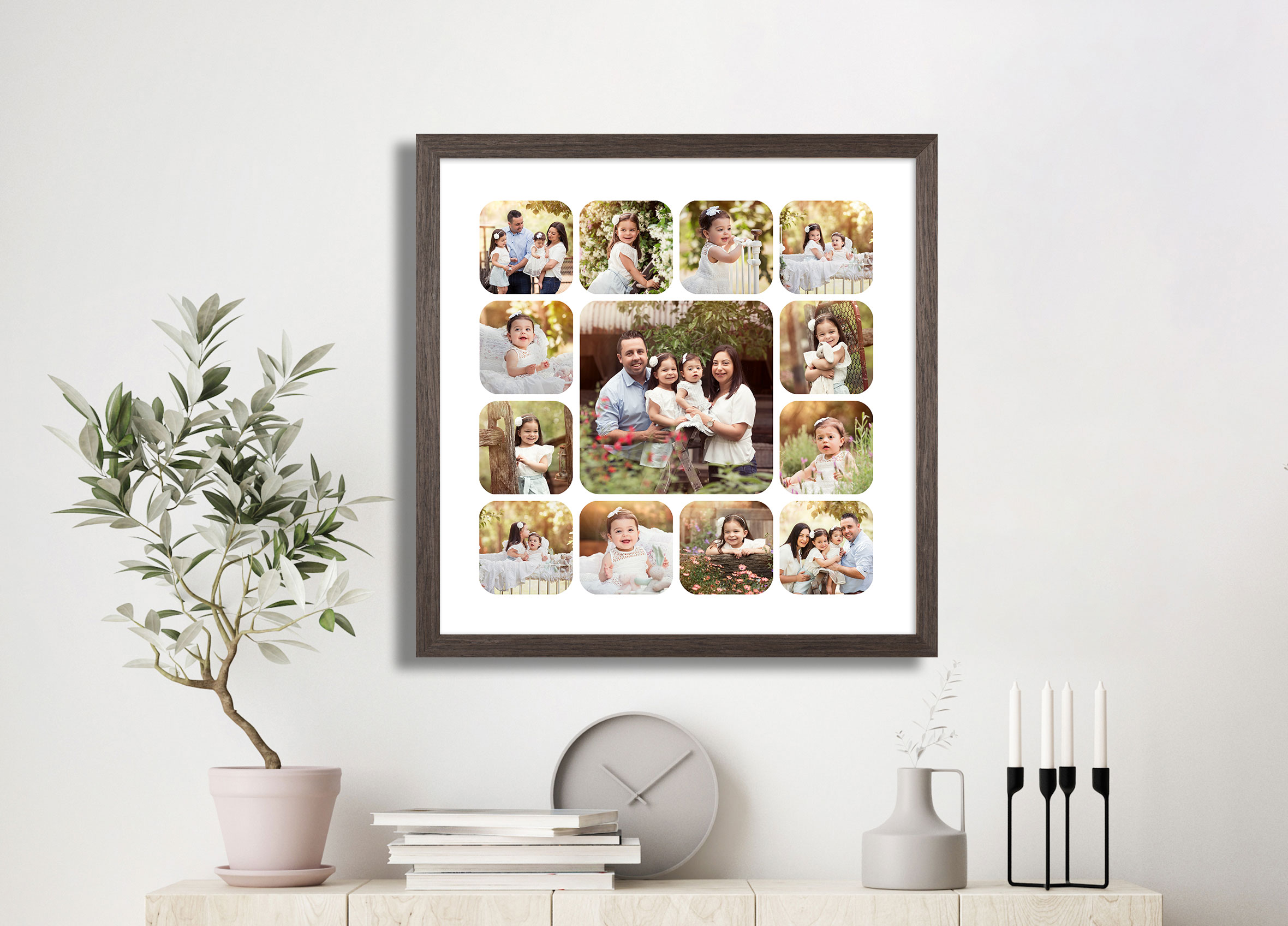 You can design your Montage Frame using our Photoshop or Canva templates, or let our team create it for you with our Design Service.