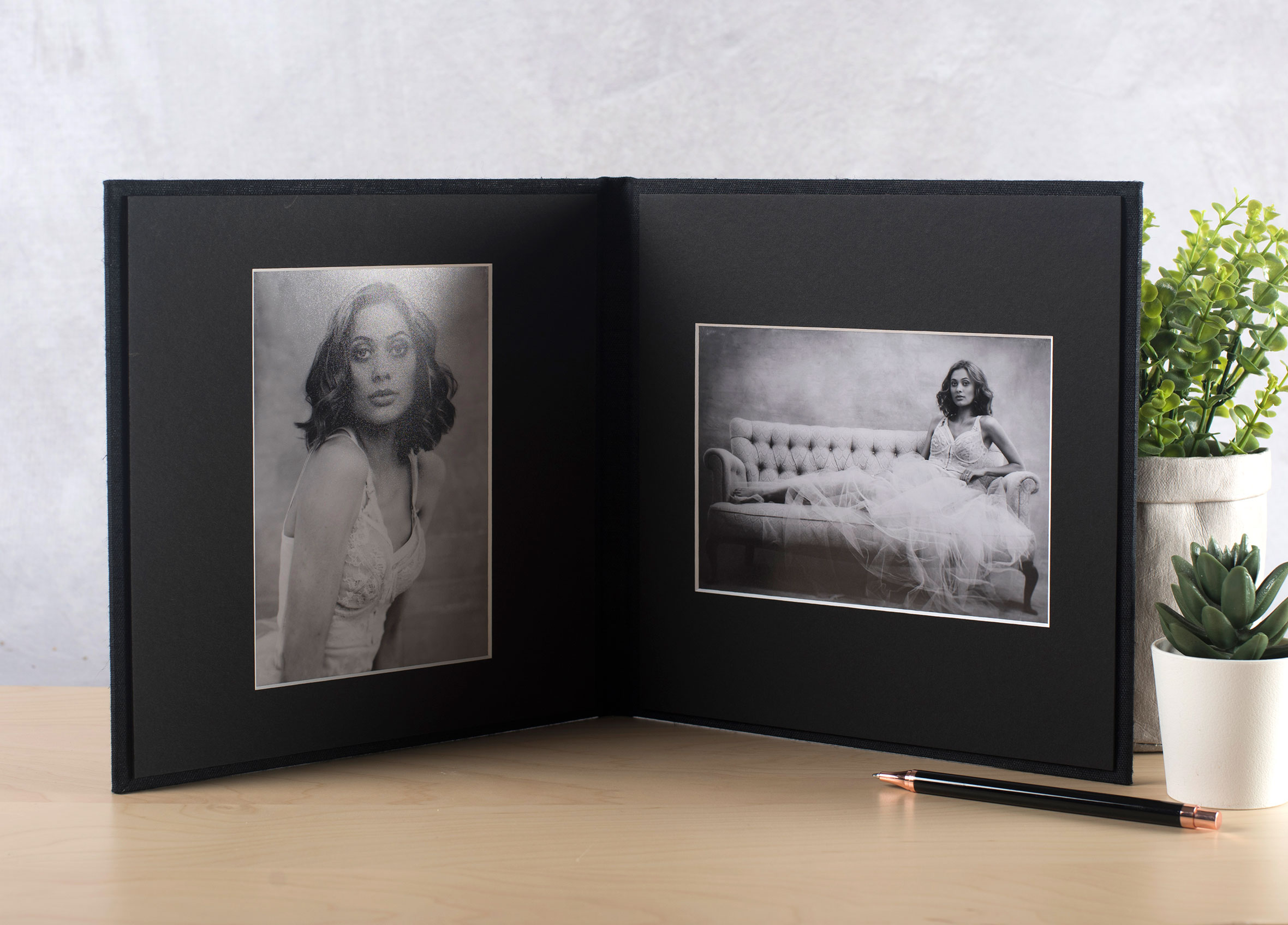 - Handmade, cloth covered folios to hold 2 7x7", 6x4" or 7x5" prints