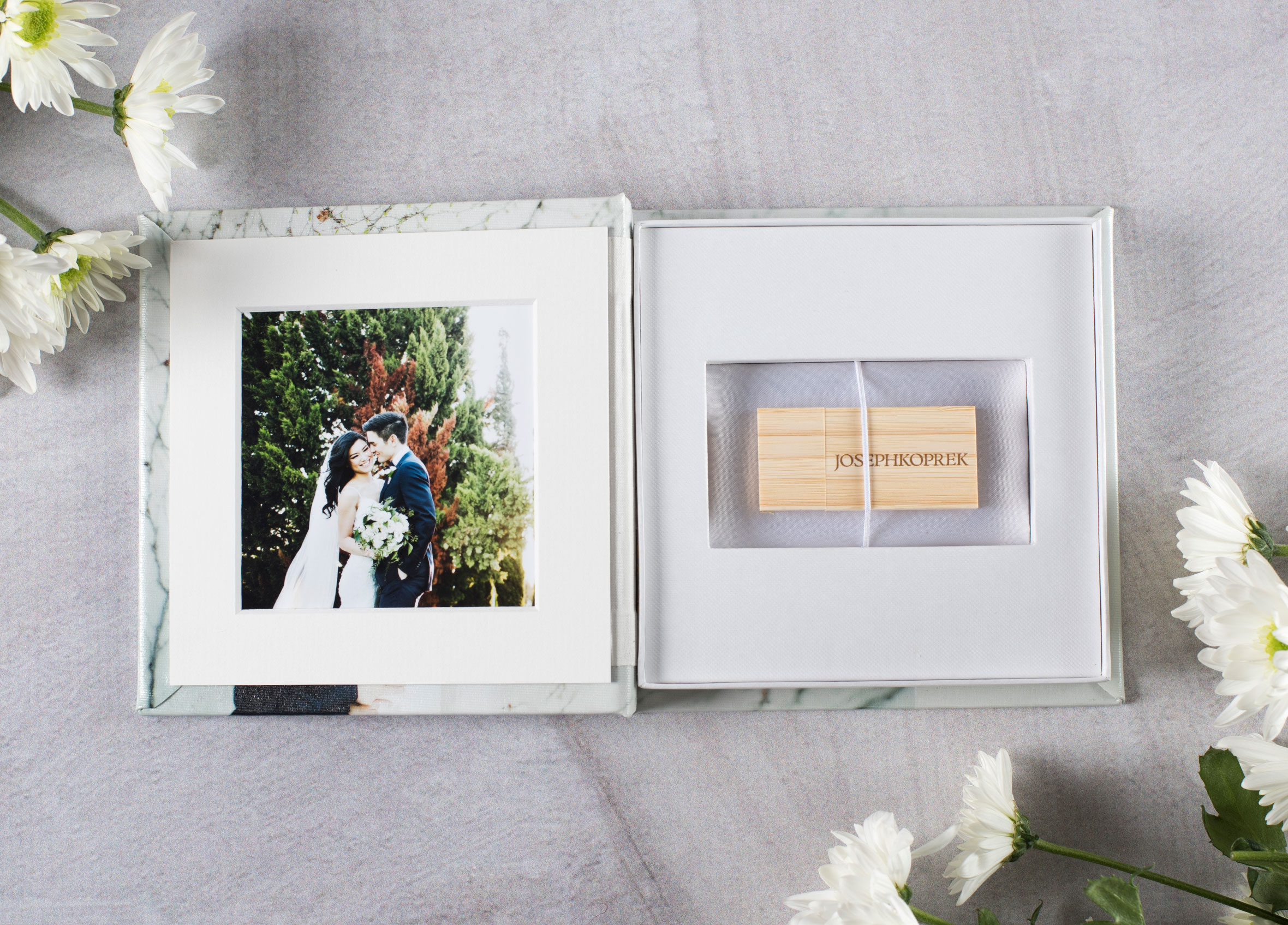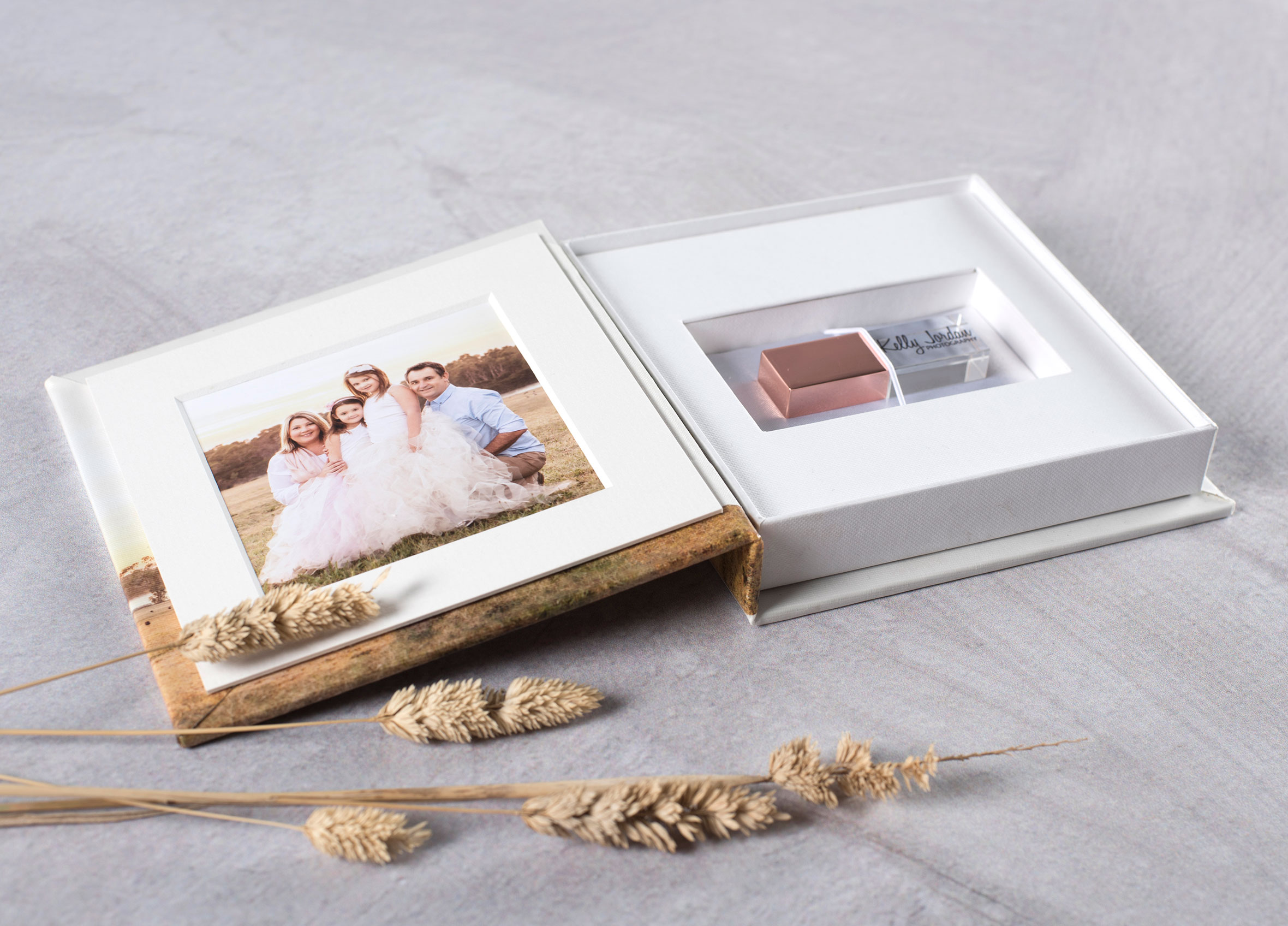 You can choose to have us print and mount your photo into the mat inside your USB Box so it arrives complete and ready to hand over to your customer.