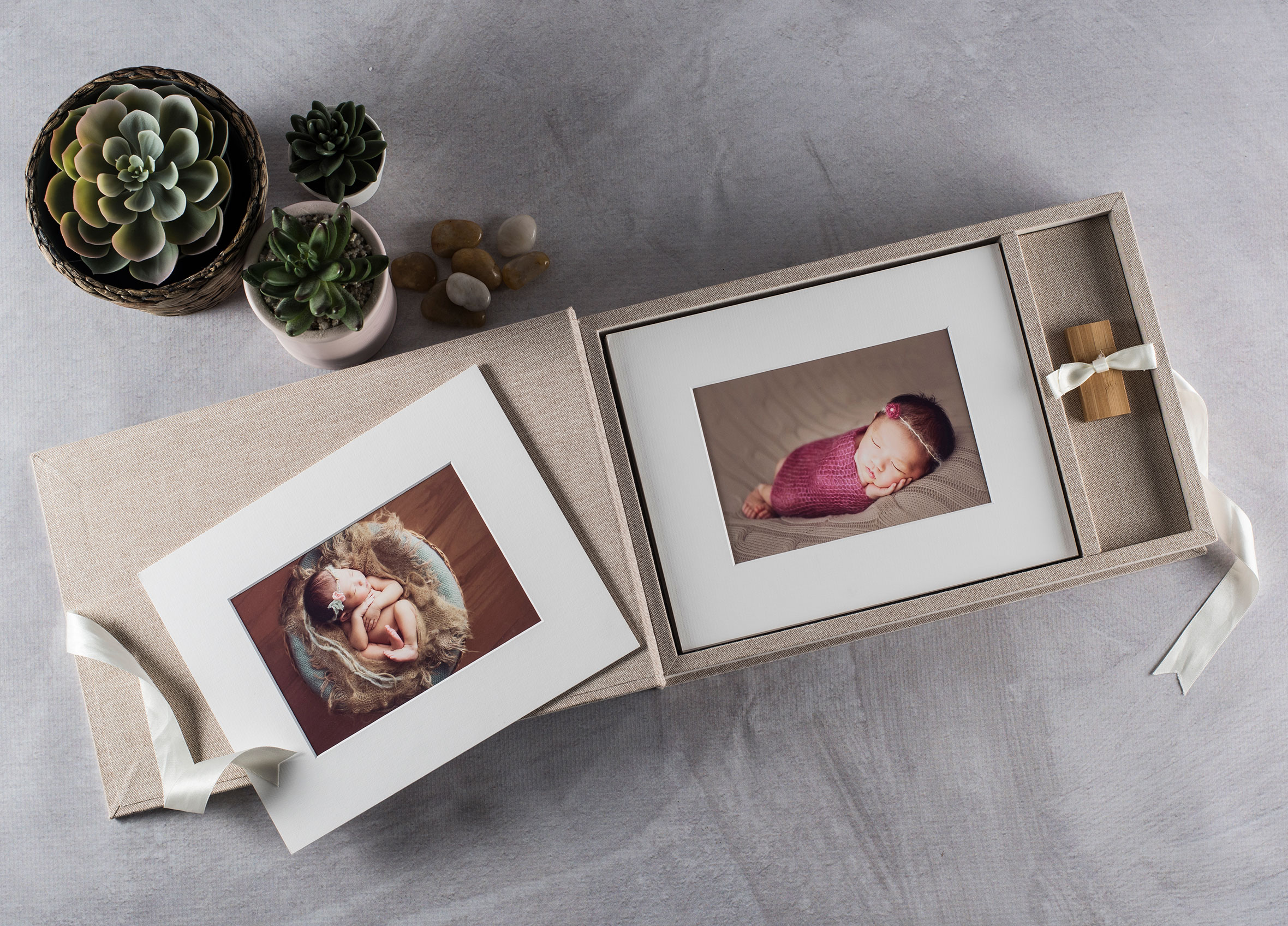 - Folio Boxes can arrive complete with photos printed & mounted