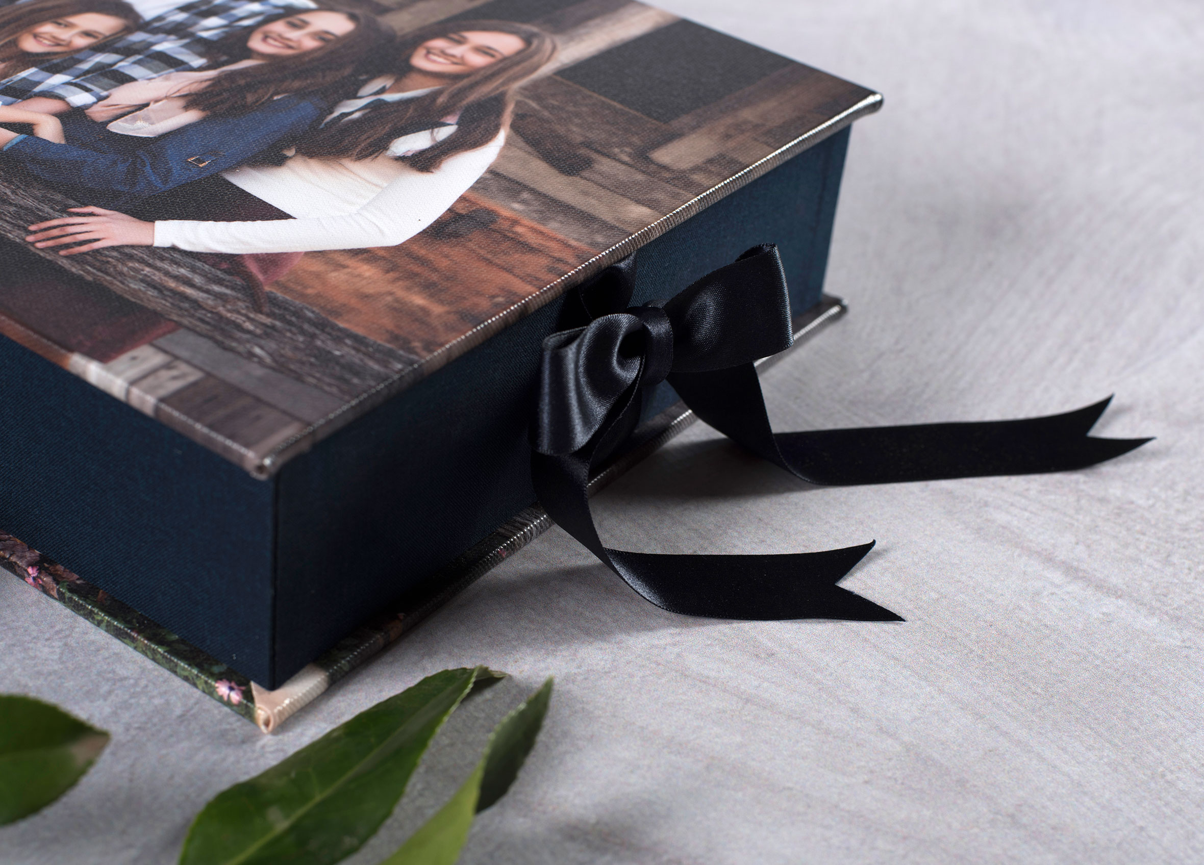 You must use our Photoshop templates to design the cover of your Image Folio Box.