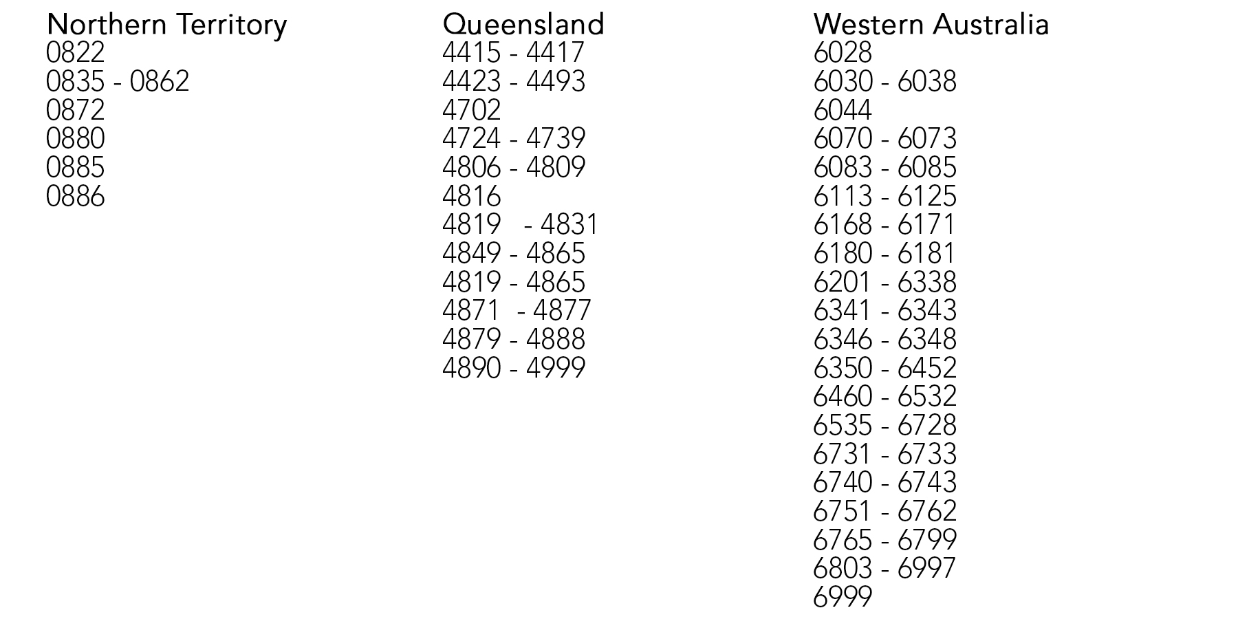 If you live in a remote area there is an additional cost for shipping.  Please refer to the list below to see if your postcode is included.