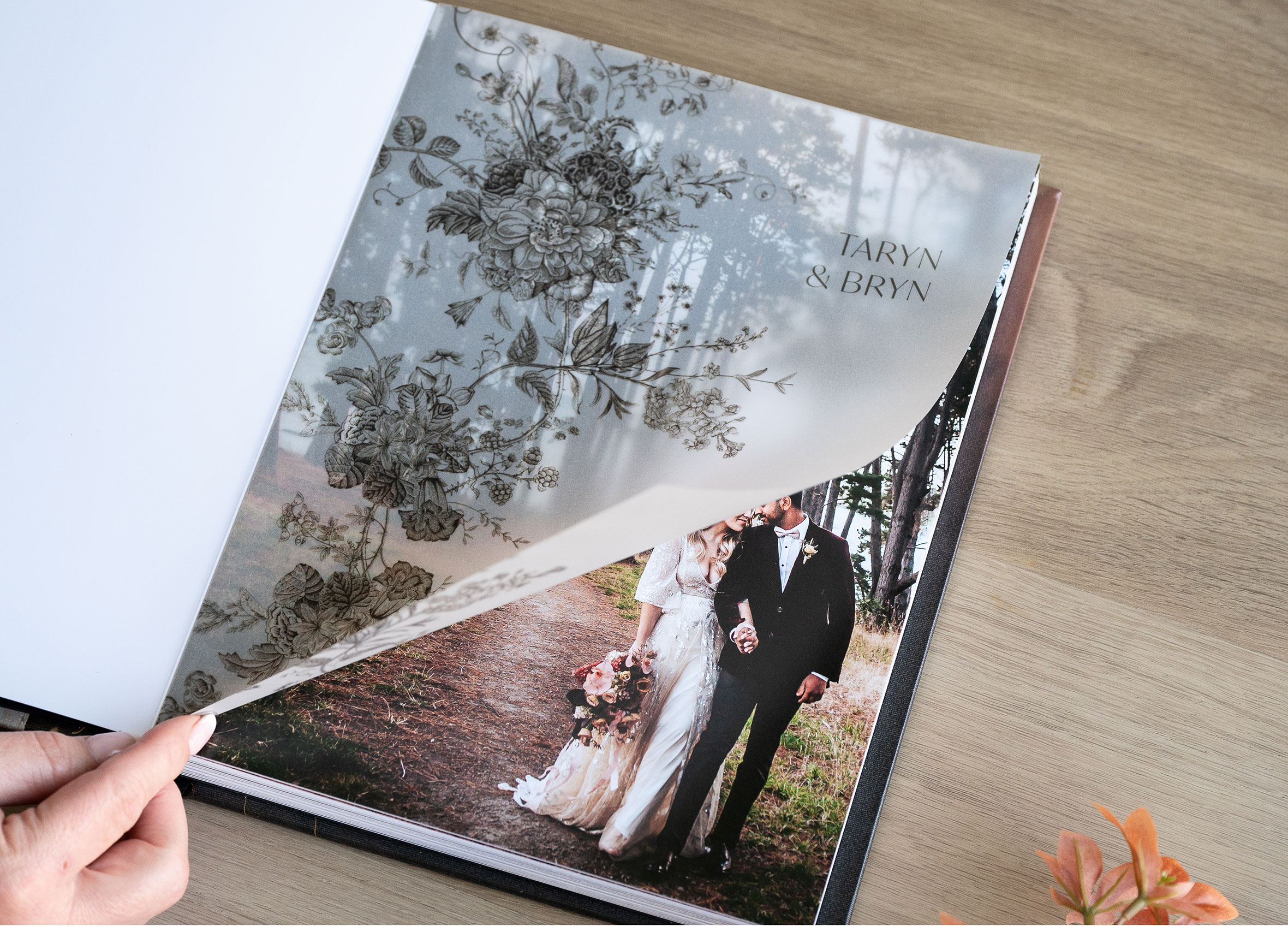 A Vellum title page is a beautiful addition to your Boutique Book. Printed on a fine art translucent paper, your clients will love their album to be personalised with details from their special day. You can choose from our 3 standard title page designs or create your own title page.