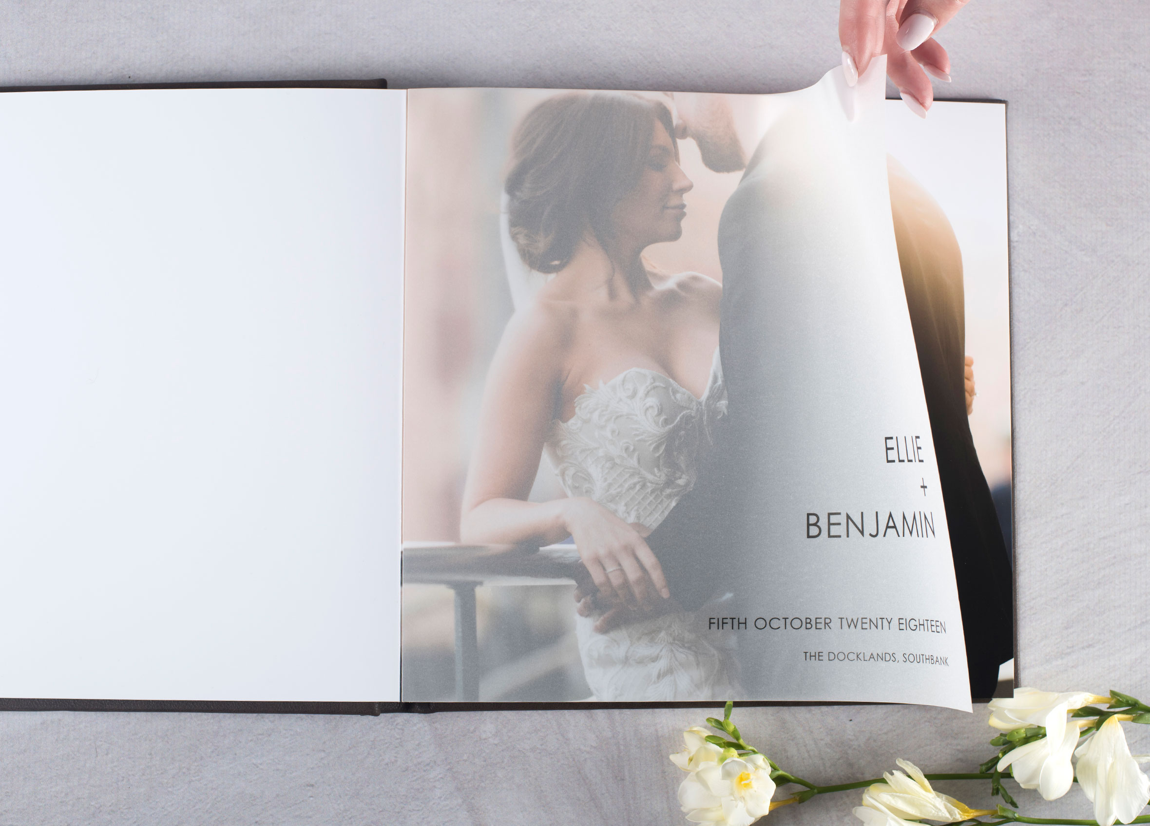IMPORTANT - The Vellum title page will sit over the right hand side of your first double page album spread. Please remember that it will look best if you leave the left hand side of the spread blank and only have an image on the right hand side when adding a vellum title page.