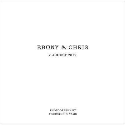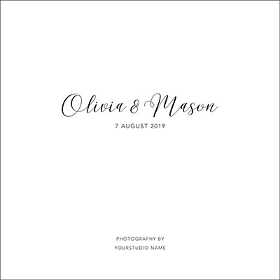 Make designing easy by using one of our 3 standard title pages. When you place your order online, select the style you would like and let us know the clients name, event date and the photography studio name.